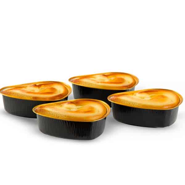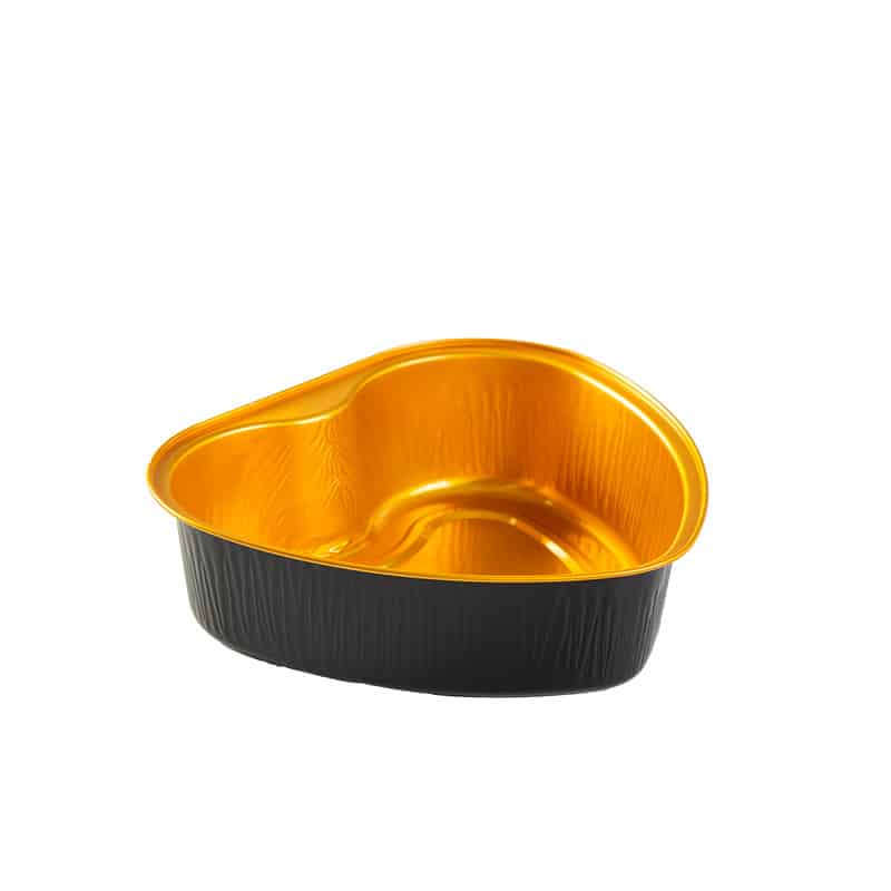 חבילת 4 תבניות אלומיניום לב שחור/זהב+ מכסה קוטר 13.5 גובה 3 ס”מ 250 מ”ל