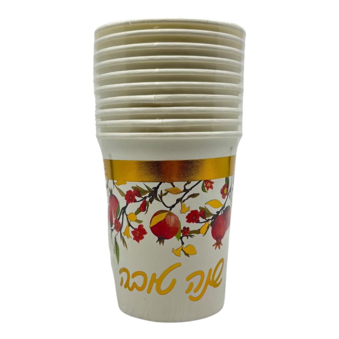 חבילת 10 כוסות נייר “שנה טובה” רימונים זהב