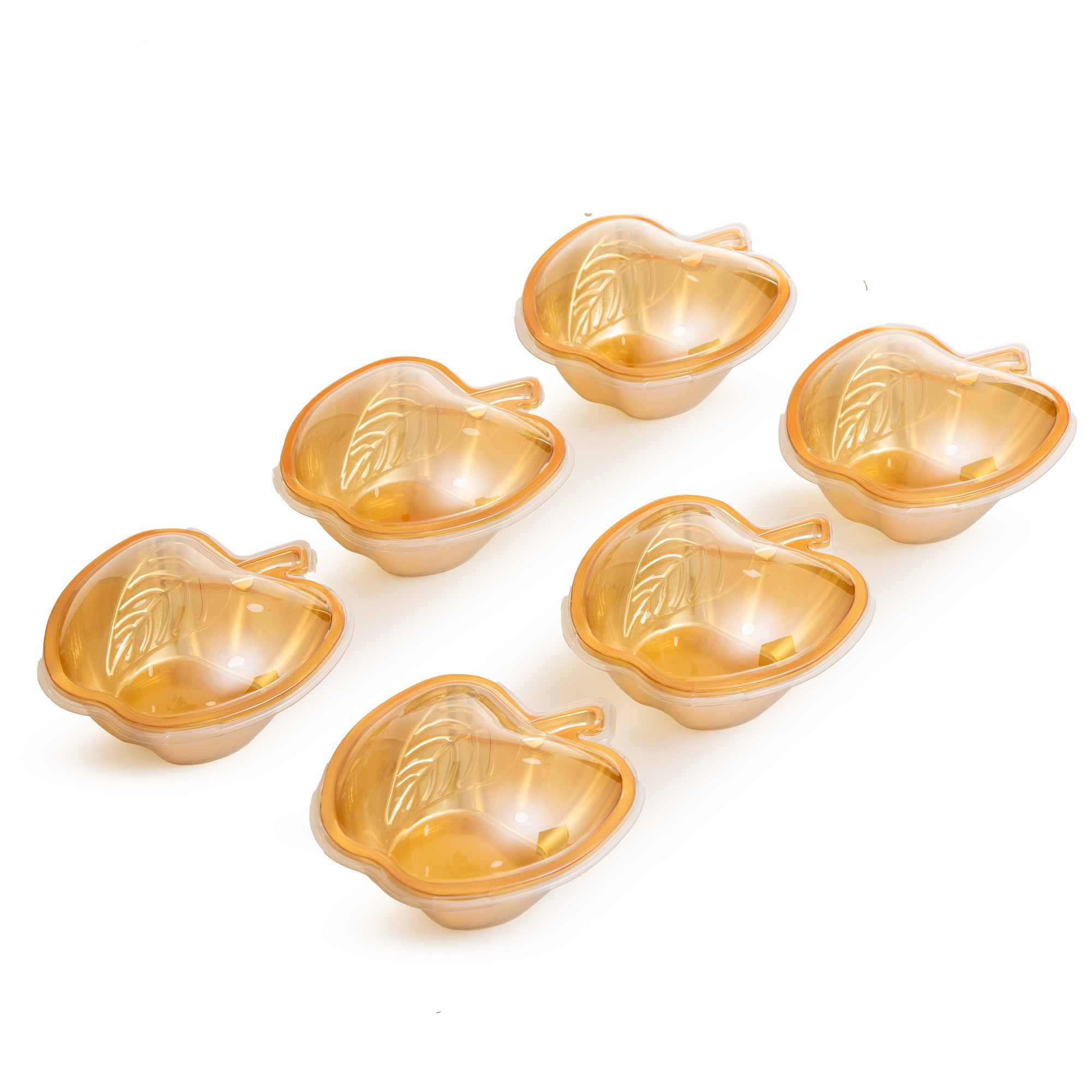 חבילת 6 קערות פלסטיק בצורת תפוח+ מכסה- זהב