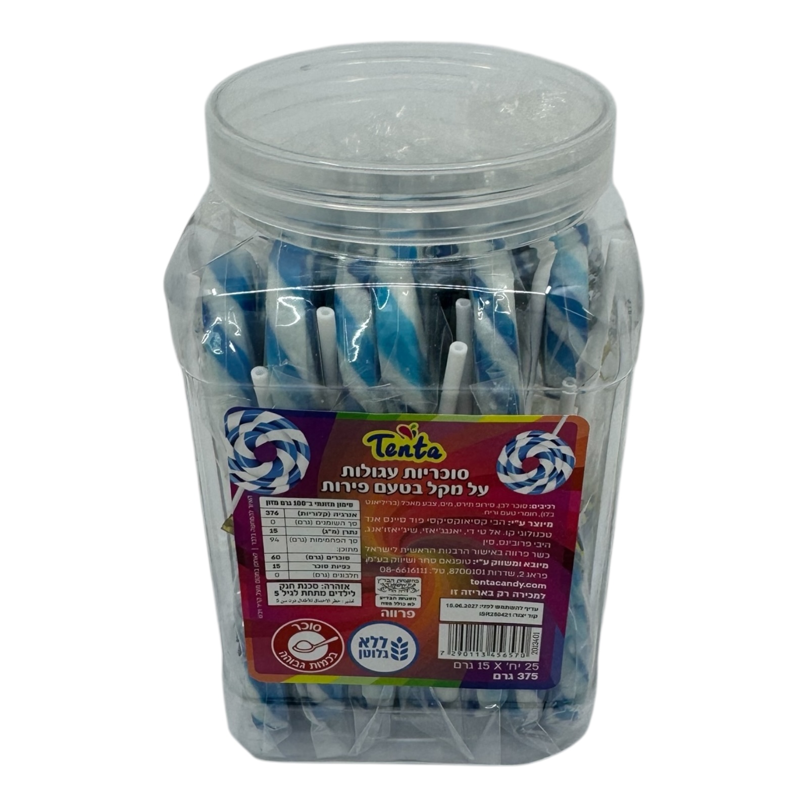 טנטה – סוכריות על מקל עגולות כחול לבן 1/25