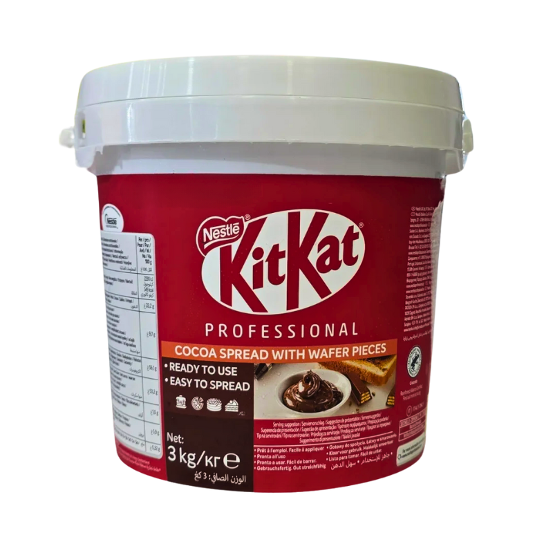 ממרח קיט־קט בטעם שוקולד עם שברי וופל, למריחה ולשילוב בעוגות, עוגיות, קרמים, מוסים, גלידות ועוד. מרקם חלק ונוח לעבודה שמוסיף את טעם הקיט־קט המוכר לכל קינוח.