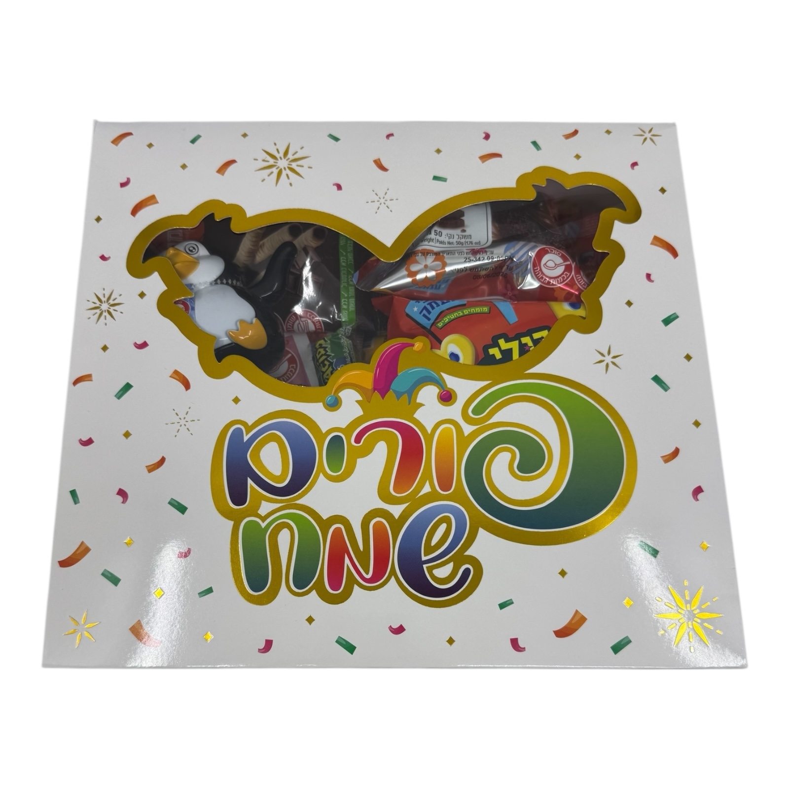 חוגגים את חג הפורים עם משלוח מנות יוקרתי הכולל מבחר ממתקים איכותיים, ארוז בקופסת קרטון בעיצוב חגיגי!
