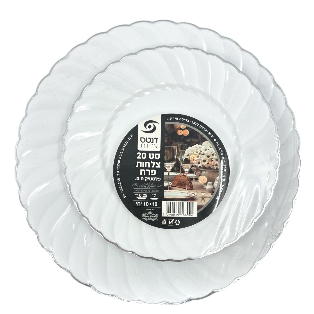 סט 20 צלחות פלסטיק פרח לבן