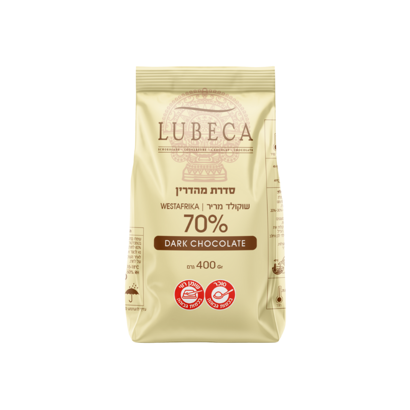 מטבעות שוקולד מריר 70% של לובקה מאופיין בטעם עשיר, הנובע מהאחוז הגבוה של מוצקי קקאו איכותיים בתוכו. נוח מאד להמסה ולעבודה.