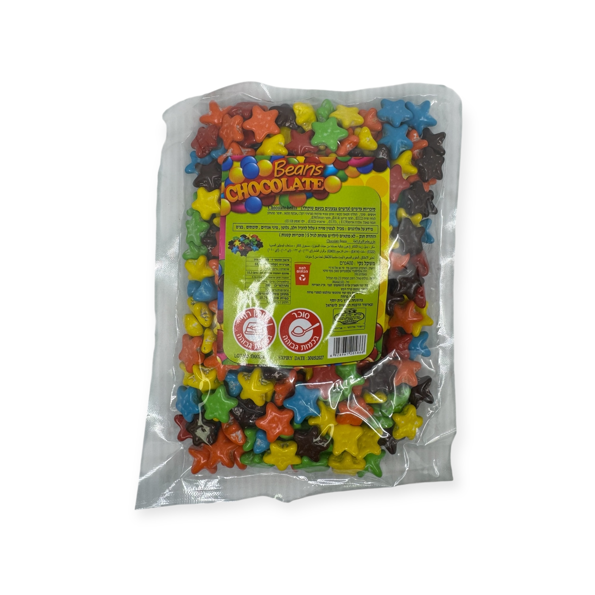 שקית סוכריות עדשים צבעונים בטעם שוקולד בצורת כוכב 400 גרם